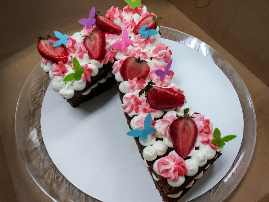 Diferente y sabroso. ¡Este pastel te encantará y a los demás también! Puedes elegir la letra o número de tu preferencia. La letra o el número tiene dos pisos (two layers) con relleno en medio, puedes elegir entre; mermelada (fresa o durazno), o fresa fresca o durazno. (Entre 8 o 10 porciones)